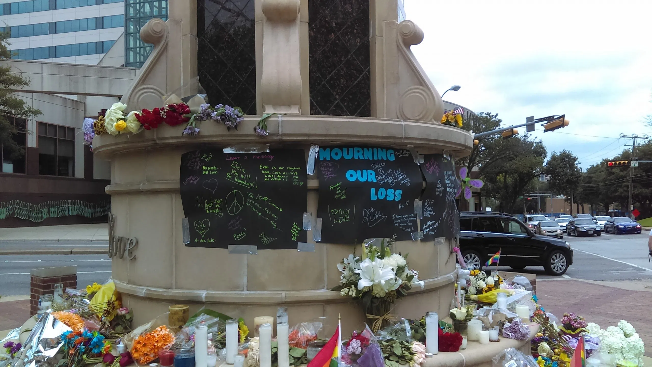 Pilcik says the mood in Oaklawn, after the mass shooting attack against the gay nightclub in Orlando, has been somber and sad. People have been leaving flowers, signs and candles at the memorial at Cedar Springs and Oaklawn Avenue.