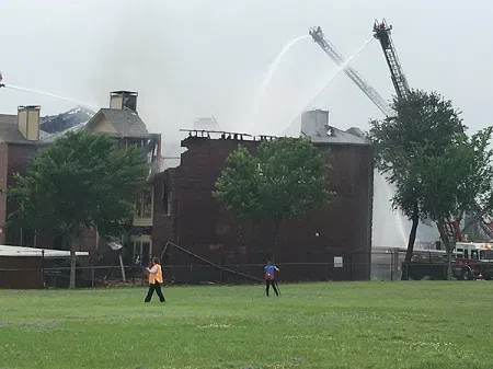 Carrollton (WBAP/KLIF News) – A three alarm fire damaged an apartment building and led to the early dismissal of a school in Carrollton Friday. The fire at the complex near Kelly Boulevard and F...