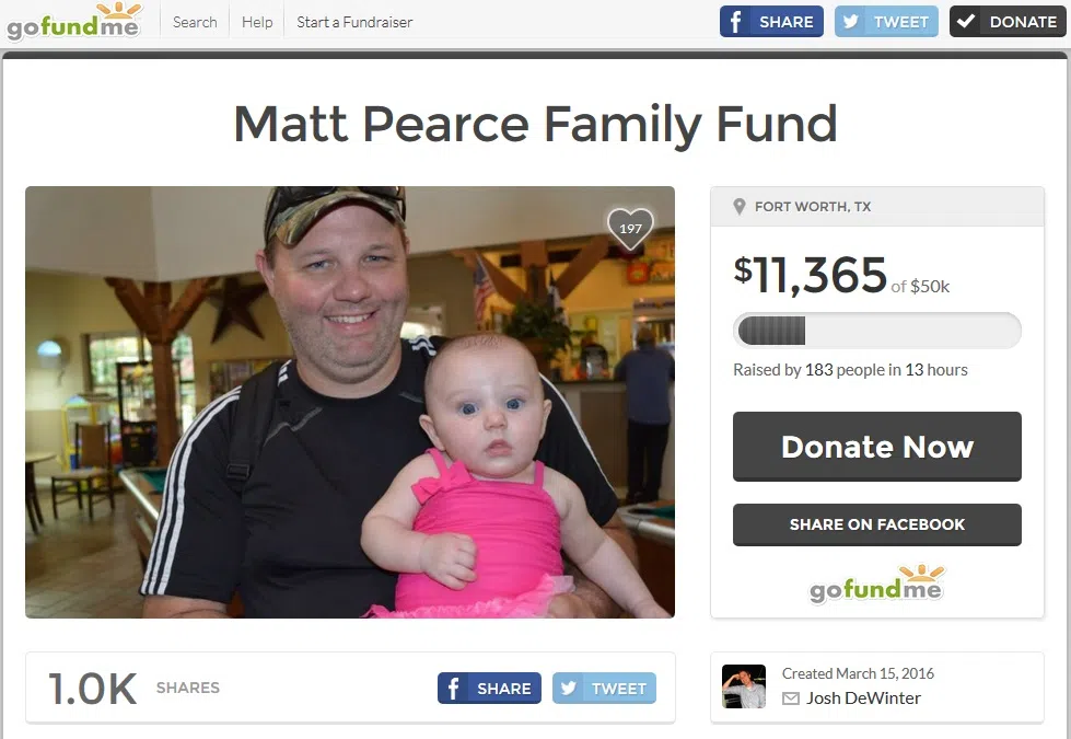 Click on the picture to donate. FT. WORTH (WBAP/KLIF) – A GoFundMe account has been established for the Ft. Worth Police Officer who was injured in a shootout Tuesday afternoon. Officer Matt Pea...