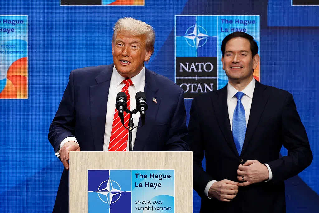 THE HAGUE, NETHERLANDS – JUNE 25: US President Donald Trump speaks during a news conference following the 2025 NATO Summit on June 25, 2025 in The Hague, Netherlands. Among other matters, member...